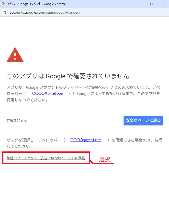 新たに、「無題のプロジェクト(安全ではないページ)に移動」というリンクが表示されました。